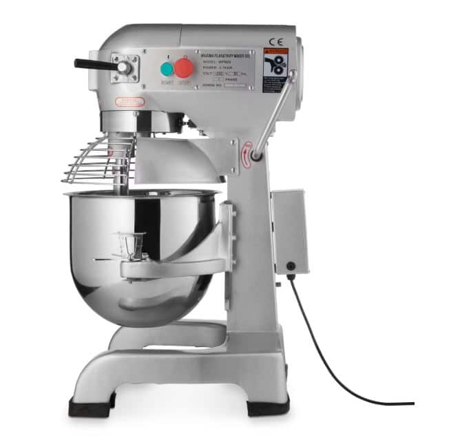 Ovaj robusni planetarni mikser je opremljen čvrstom posudom za mešanje od nerđajućeg čelika od 20L. Mućenje, mesenje i mešanje se mogu obaviti na tri različite brzine: 105, 180 i maksimalnoj brzini od 408 obrtaja u minuti. Uz priloženu mutilicu, tučenje belanaca je lak zadatak. I kuka za testo i krilo za testo su uključeni u ovaj profesionalni planetarni mikser. Metalni zupčanici omogućavaju mešenje i mešanje bilo koje vrste testa i testa bez napora. Ovaj visokokvalitetni mikser za testo je jednostavan za rukovanje zahvaljujući odvojenim dugmadima za pokretanje i zaustavljanje.