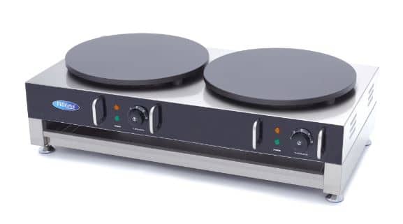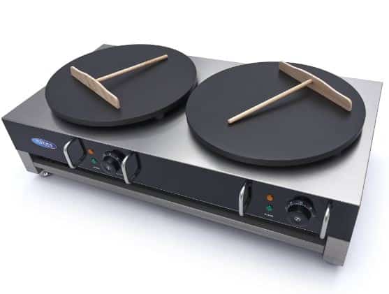 Aparat za pravljenje palačinki je napravljen od livenog gvožđa i ima premaz protiv lepljenja. Sa podesivim termostatom možete podesiti temperaturu do 300ºC. Da biste tačno znali kada je ploča dovoljno vruća, postoji zgodna indikatorska lampica. Kada se svetla ugase, možete početi sa pečenjem. Standardno se isporučuju dve drvene pregrade za testo tako da možete lepo da rasporedite testo po plehu za pečenje i dobijete savršene palačinke.