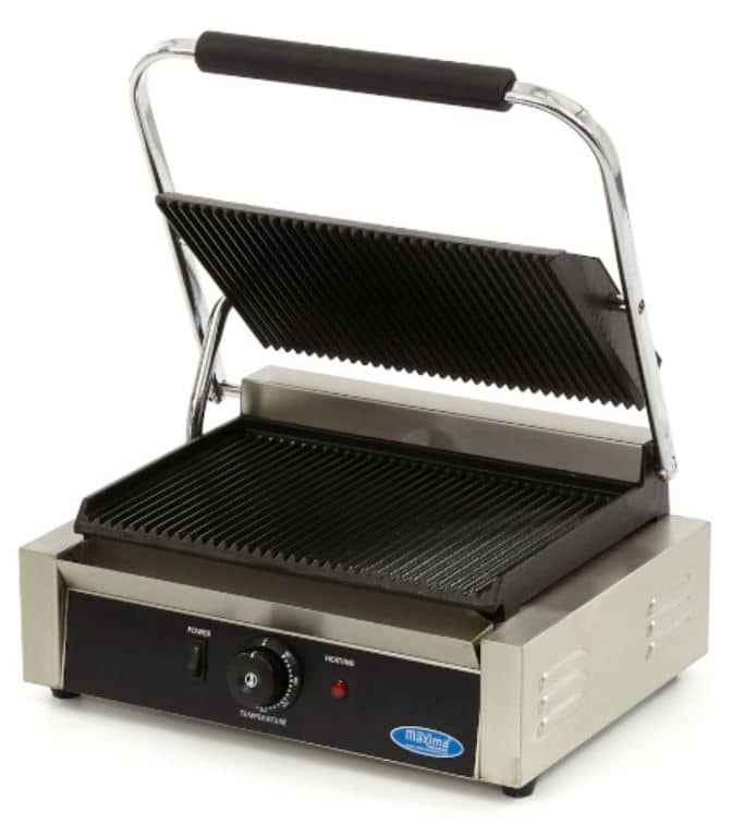 Koristite ovaj profesionalni kontaktni roštilj za pripremu ukusnih paninija ili velikih sendviča. Na dve tepsije od livenog gvožđa možete pržiti i drugu hranu, kao što su meso, povrće i riba. Zahvaljujući nažljebljenoj površini, ovaj kontaktni roštilj je izuzetno svestran. I gornja i donja ploča imaju žljebove, što stvara karakterističan uzorak roštilja na hrani. Ovaj kontaktni roštilj je veoma pogodan za upotrebu u svakoj profesionalnoj kuhinji i zahvaljujući visokokvalitetnim materijalima može izdržati intenzivnu svakodnevnu upotrebu.