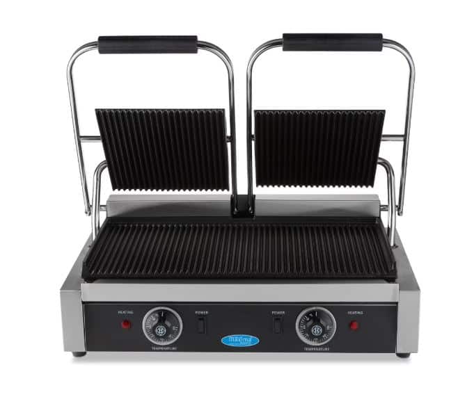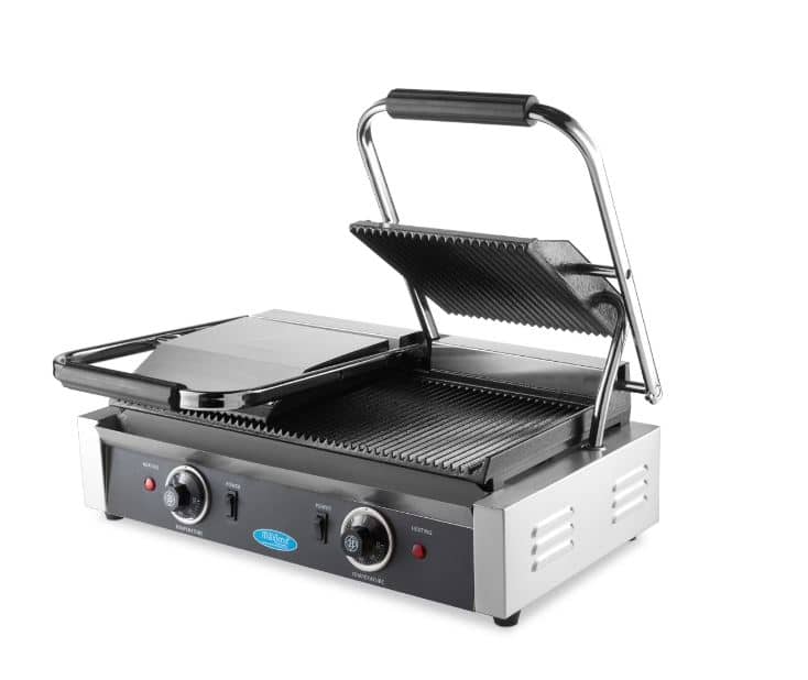 U užurbanim kuhinjama, na primer, u restoranima, kafićima ili menzama, ovaj roštilj sa dvostrukim kontaktom dobro dolazi. Omogućava vam da pripremite mnoga jela za kratko vreme. Osim sendviča sa roštilja i paninija, na nažljebljenoj ploči od livenog gvožđa možete pržiti i hamburgere, ribu, povrće i druge proizvode. Ovaj profesionalni kontaktni roštilj idealan je za intenzivnu svakodnevnu upotrebu. Zahvaljujući svojoj robusnoj konstrukciji, traje dugo i može izdržati tešku upotrebu.