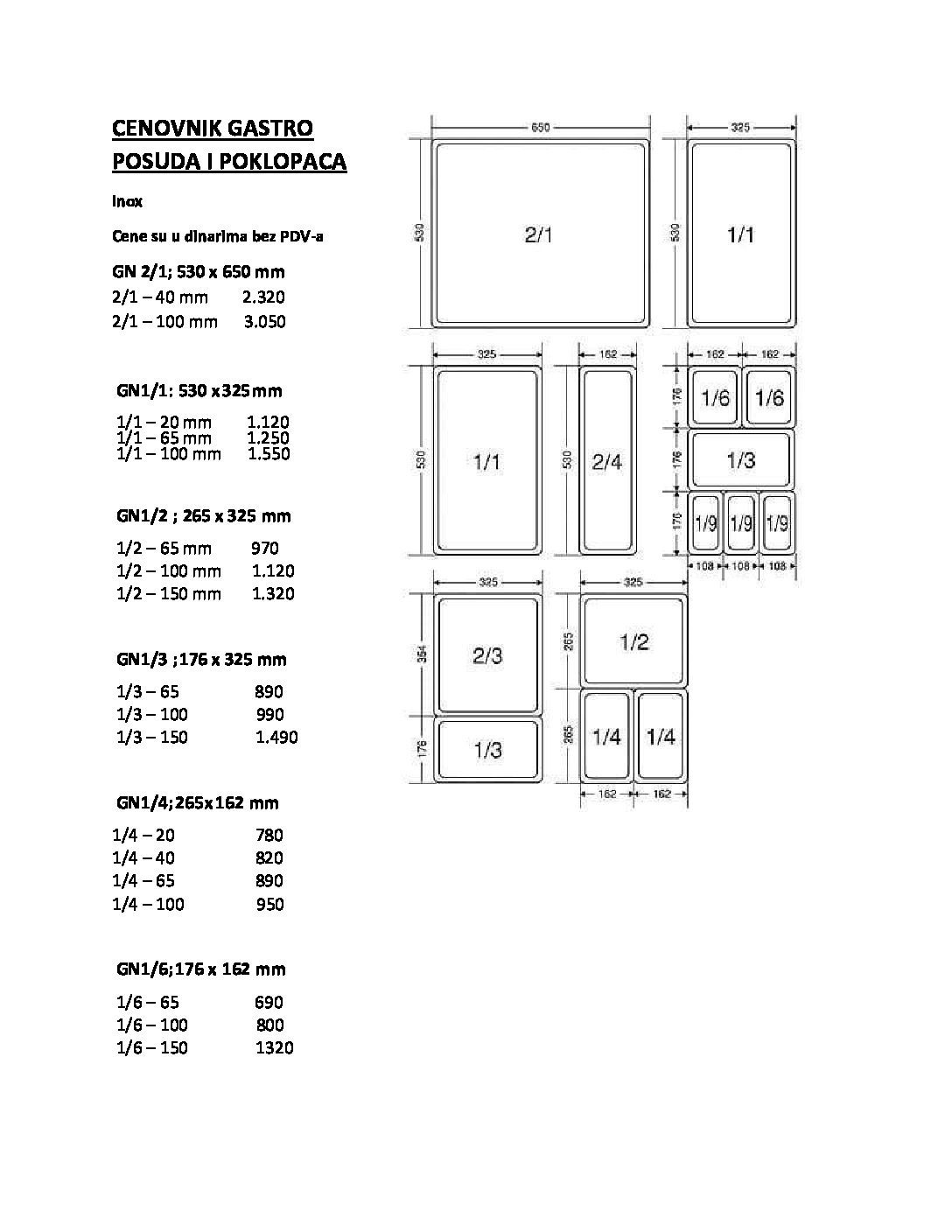 • Gastro posude nisu uključene u cenu