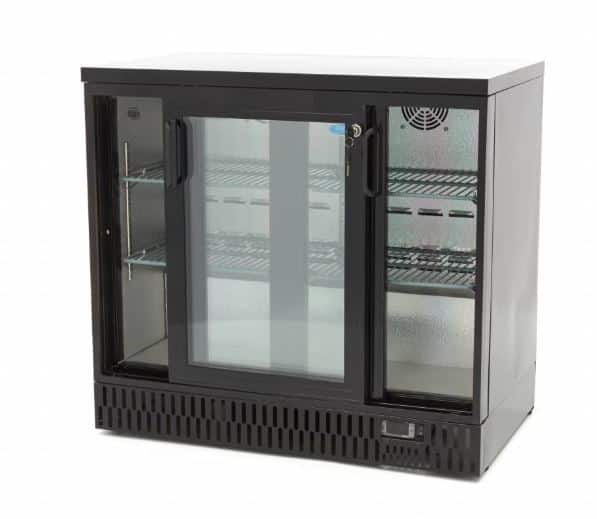 Da biste piće i grickalice predstavili profesionalno, a istovremeno ih ohlađivali, potreban vam je ovaj luksuzno završen, crni frižider za pića. Idealna je veličina za postavljanje na šank ili pult. Ovaj model ima kapacitet od 214L i ima dvoja klizna vrata sa duplim staklom. Oba vrata imaju bravu za potpuno zatvaranje frižidera. Da bi se proizvodi u frižideru za piće još bolje prikazali, ima ugrađeno LED osvetljenje.